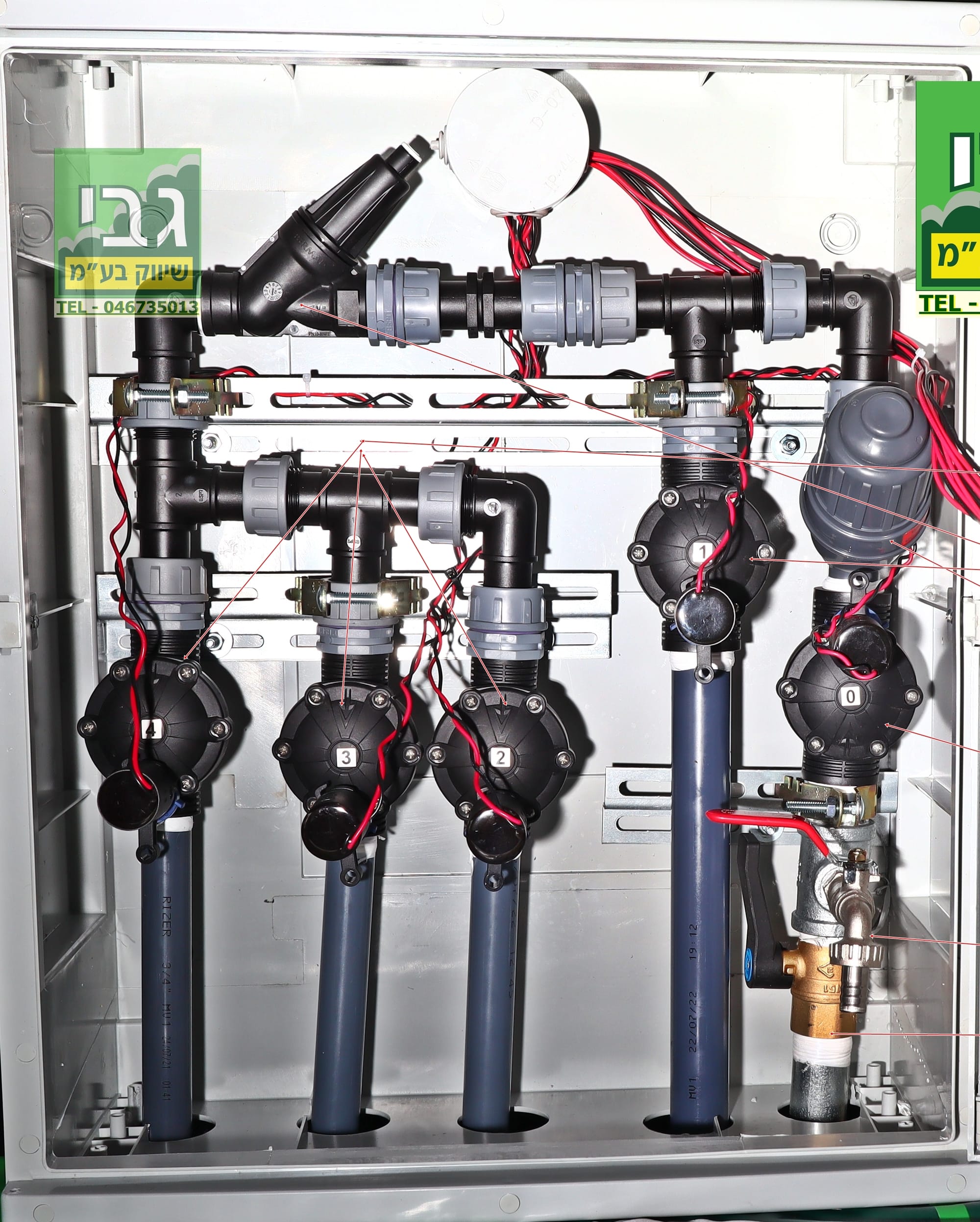 ארון השקייה נטגרדן עם מחשב גלקון קומפלט ארבע ברזים: אחד להמטרה ושלושה לטפטוף ,