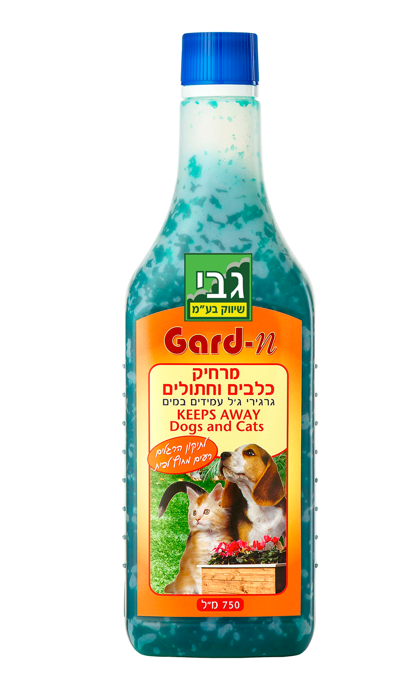 ג'ל מרחיק כלבים וחתולים 750 מ:ל, גרגירי ג'ל עמידים במים לדחיה והרחקת כלבים וחתולים,במטרה לתקן את הרגלם הרעים של בעלי החיים. הג'ל מבוסס על חומרים טבעיים וריח חזק שדוחה את הכלבים והחתולים מאזור היישום. הג'ל מוכן ולשימוש ומתאים לחצר,לגינה, לעציצים (אינו מזיק לצמחים) ועמיד לגשם והשקיה. אופן היישום לפי סוג בע"ח: כלבים: לפני הפיזור הג'ל יש לאסוף ביסודיות את שאיריות הצואה מהשטח המטופל. לאחר מכן יש לפזר את החומר במספר מוקדים, במרחק של 40-60 ס"מ בינהם. חתולים:יש לדאוג לפזר את הג'ל בדיוק היכן שהחתול עשה את צרכיו או את הנזק. *יש לחזור על הטיפולים עד להשגת תוצאה, ועד שהחיה משנה התנהגותה.