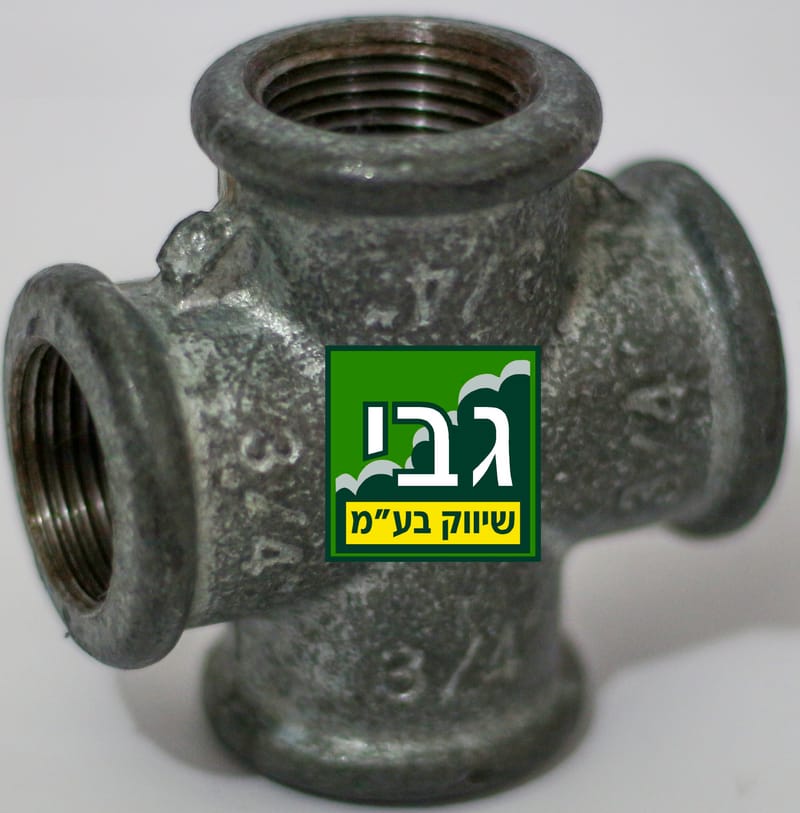 הסתעפות צלב 4 יציאות פיטינגים מגולוונים - מחברי מתכת מגולוונים