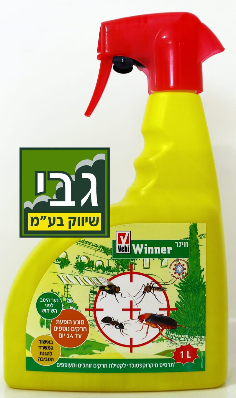 ווינר תרסיס מיקרוקפסולרי (שיחרור איטי יעיל לאורך זמן) לקטילת חרקים זוחלים ומעופפים 1 ליטר ווינר 1 ליטר היינו תכשיר מוכן לשימוש בתוארית מיקרוקפסולרית להדברת חרקים זוחלים ומעופפים, ללא ריח, רעילות נמוכה לאדם. Winner קוטל ומונע הופעת חרקים נוספים עד 14 יום, קוטל ביעילות: נמלים, תיקנים (ג'וקים) יתושים, זבובים, וחרקים ומזיקים רבים נוספים. ווינר ללא ריח, רעילות נמוכה לאדם.