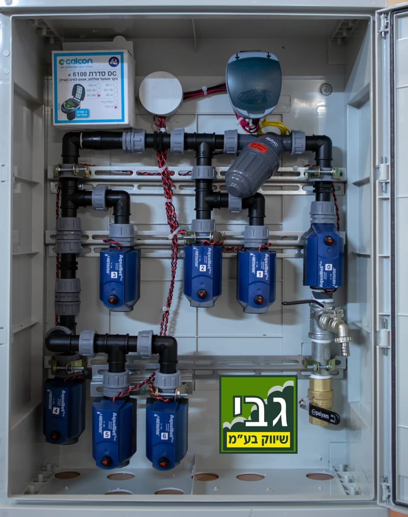 ראש מערכת השקייה,עם מחשב גלקון DC6S בארון קומפלט! קל ונוח לתכנות ולתפעול, המערכת מכילה שבעה ברזים חשמליים (6 ברזי השקיה וברז מאסטר לאמינות מירבית) ברז כדורי ראשי, ברז גן, מסנן עמיעד, וסת לחץ לטיפטוף, מחברי רקורד, זקיפים ומחברים לצנרת (אינם בתמונה) , הכל מוכן להתקנה רק לחבר את כניסת מקור המים ואת היציאות. הארון מסוג נטגארדן מיוצר בנטפים, עובר בדיקת חיווט ותקינות מלאה ומקיפה הכוללת בדיקת לחצים ונזילות כך שמובטח שקט נפשי ושביעות רצון מלאה.
