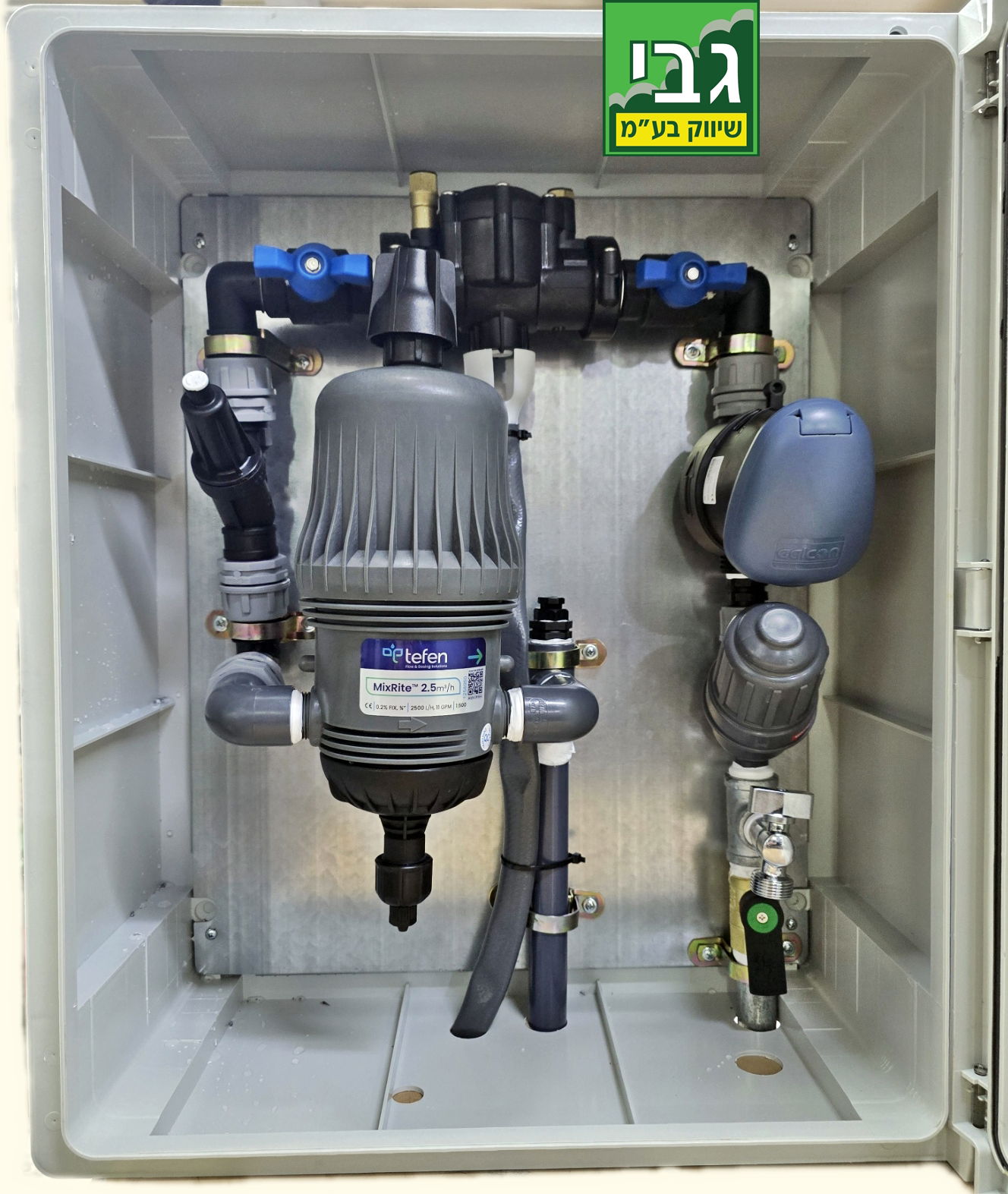 ראש מערכת השקיה חד קווי עם מדשנת בארון קומפלט