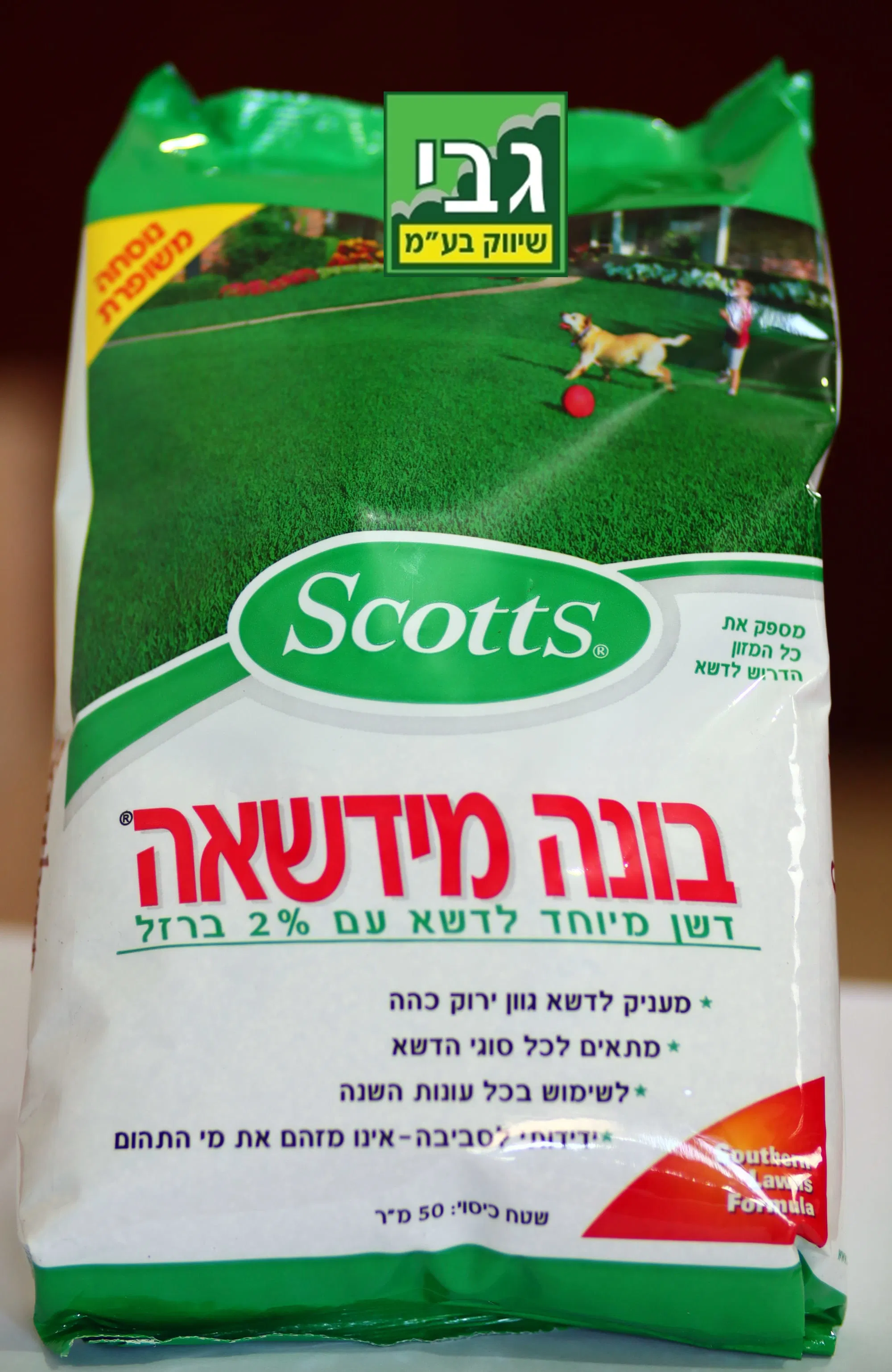 דשן בונה מידשאה SCOTTS הינו דשן מיוחד לדשא המכיל 2% ברזל גן להענקת צבע ירוק כהה ומראה בריא.