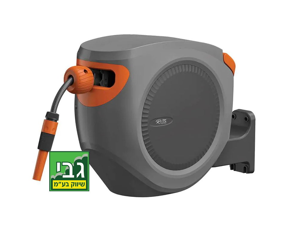 גלגלת השקיה אוטומטית קפיצית 20 מטר - ריבר עם מנגון גלילה ייחודי למשיכה והחזרת הצינור באופן אוטומטי וללא קיפולים.