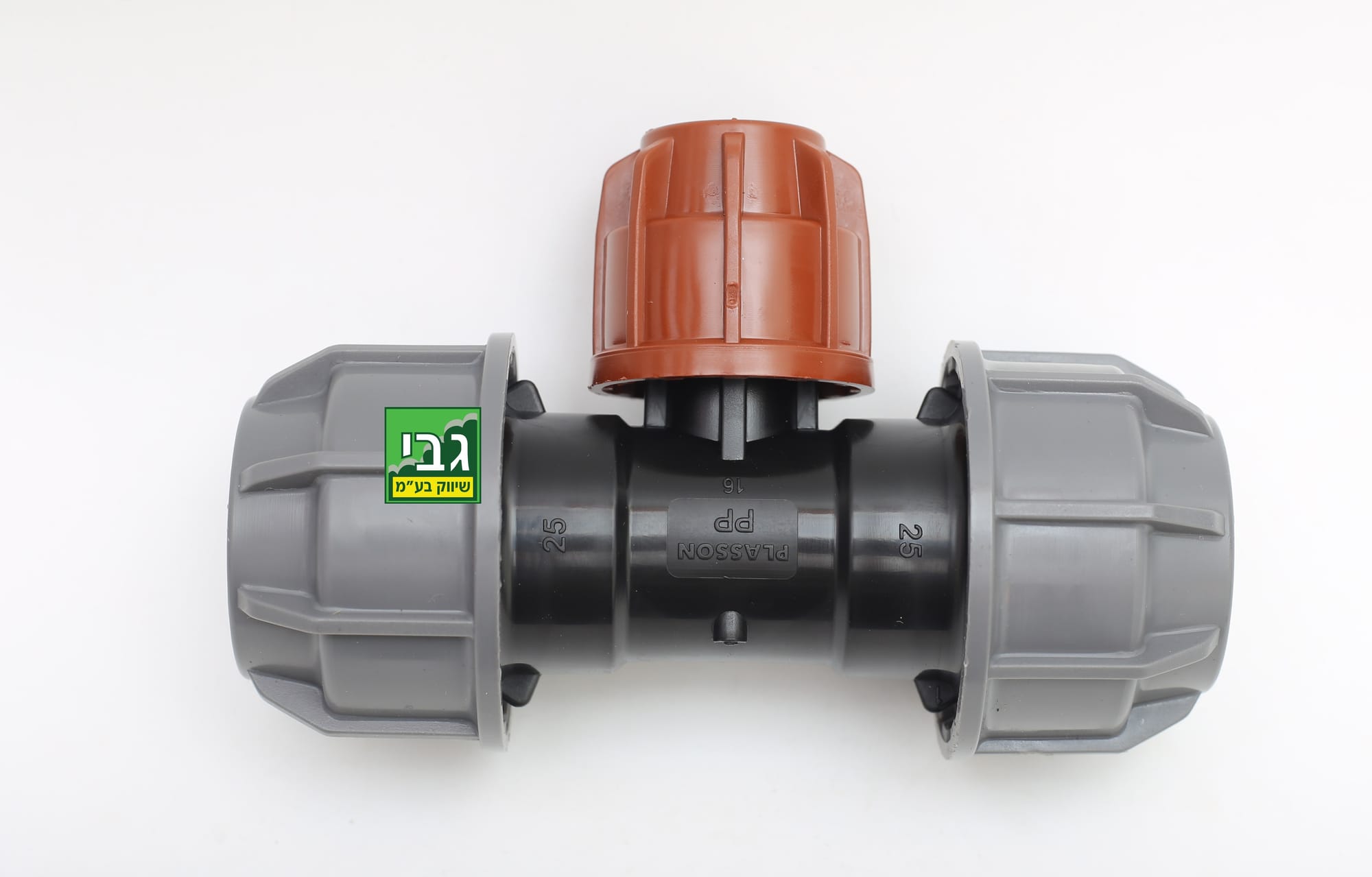 טי מעבר מצינור 20 מ"מ לצינור 16 מ"מ, מתאים במיוחד ליציאות לשלוחות טפטוף מצינור שחור לחום.