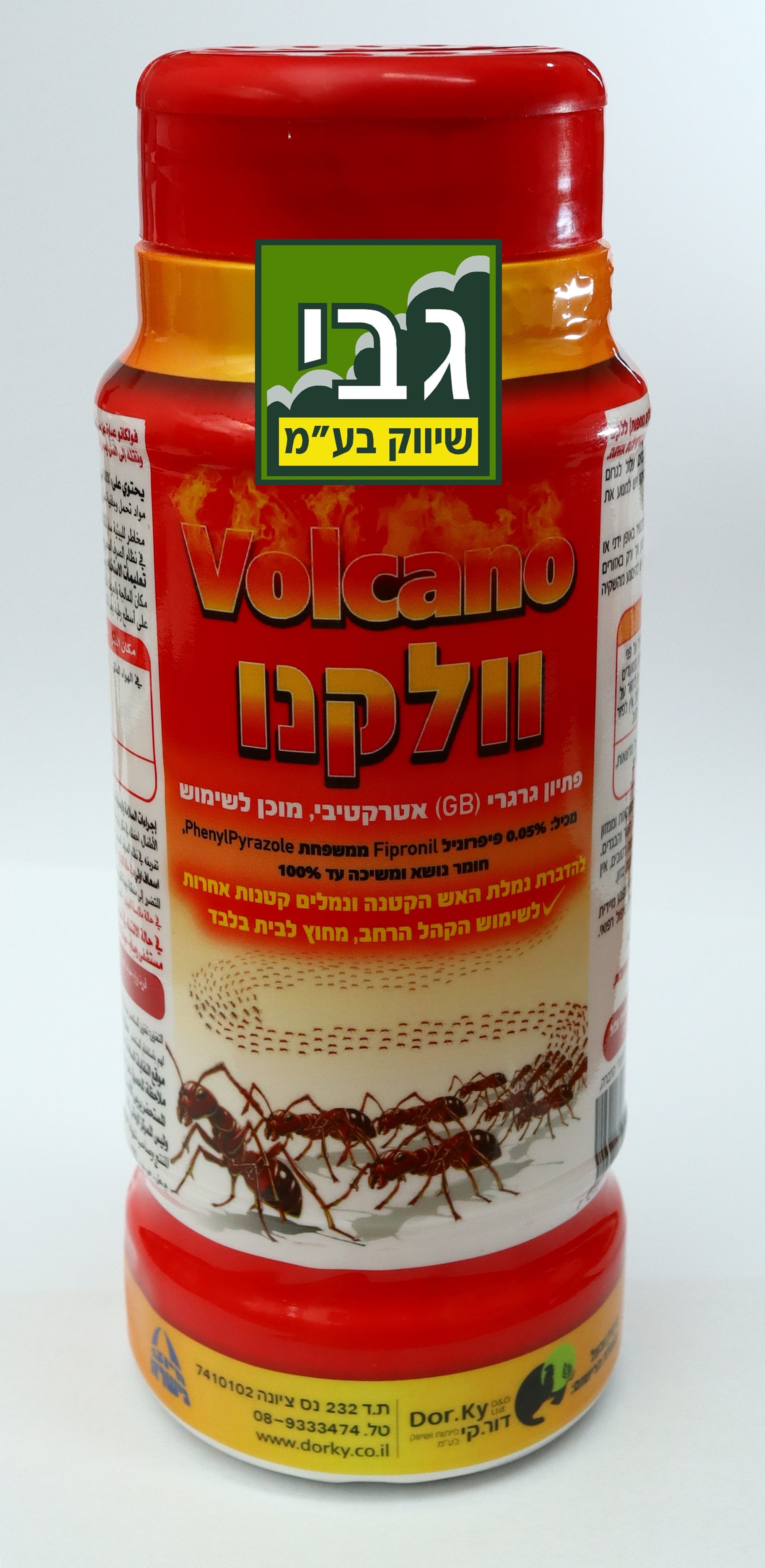 וולקנו לנמלת האש - פתיון גרגרי אטרקטיבי להדברת נמלת האש הקטנה ונמלים אחרות 250 גרם הוולקנו מכיל פיפרוניל - הפיפרוניל הינו חומר פעיל המשמש ברחבי העולם כקוטל מזיקים וחרקים פופולרי והמוביל בעולם בתחום ההדברה נגד נמלים. הוולקנו בעל פיתיון ייחודי המושך את נמלת האש הקטנה בפרט וסוגי נמלים אחרות ללקט את החומר ולשאת אותו אל הקן ובכך מרעילות את הקן כולו. לוולקנו יש את המשיכה הכי טובה דבר המפתה את הנמלה להכניסו אל הקן ובכך משפר את יעילות הקטילה משמעותית לתוצאה מעולה ולאורך זמן.