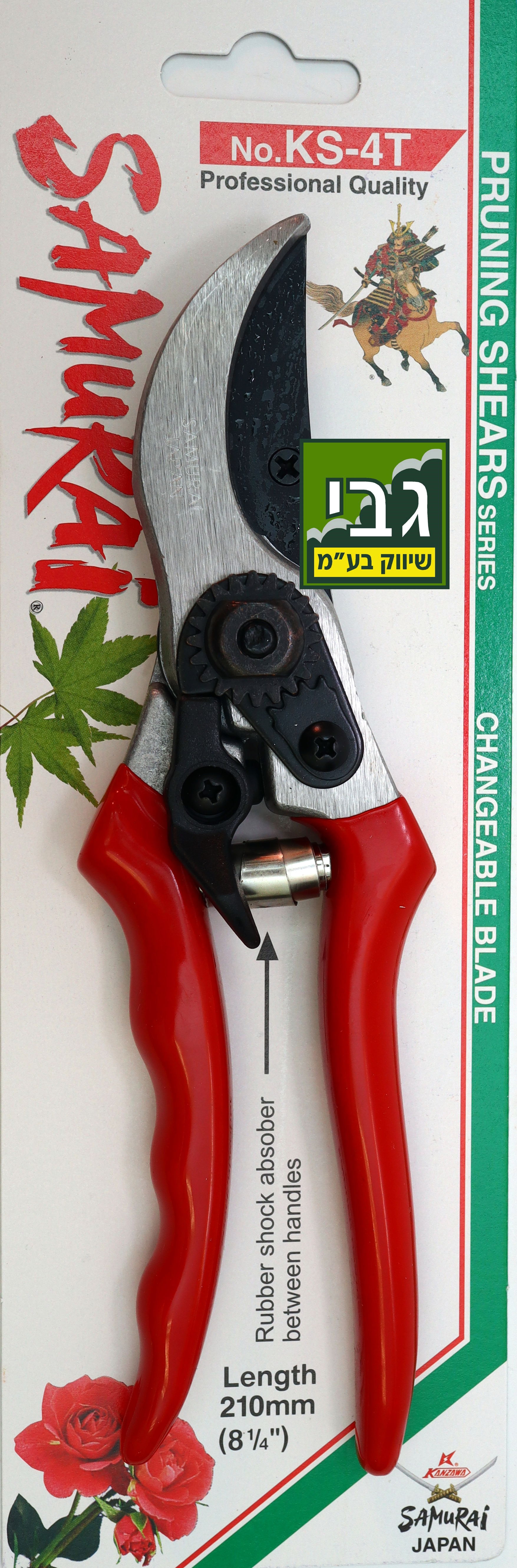 מזמרת יד סמוראי מצופה טפלון KS-4T ארץ יצור: יפן | ייעוד: מיועד לגננים | בולם זעזועים: עשוי גומי קשיח | סוג להב: מצופה טפלון | משקל בגרם: 235 מזמרת יד מסיבית וחזקה תוצרת יפן דגם 4T למזמרה להבים חדים במיוחד לחיתוך קל ללא מאמץ, המזמרה מתאימה לגיזום ענפים, ורדים, עצי פרי ונוי. מתאימה לגננים ולשימוש ממושך.