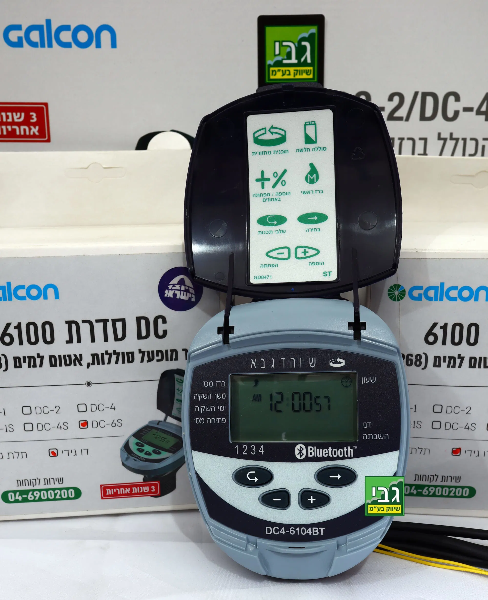 מחשב השקיה גלקון GALCON DC4 BT גלקון דיסי 4 עם בלוטות (בלוטוס - Bluetooth ) מסדרת גלקון 6100 - דגם 6104 לשליטה ותכנות בנוחות ובקלות גם באמצעות אפליקציית גלקון, (להורדה מגוגל פליי והאפסטור),
