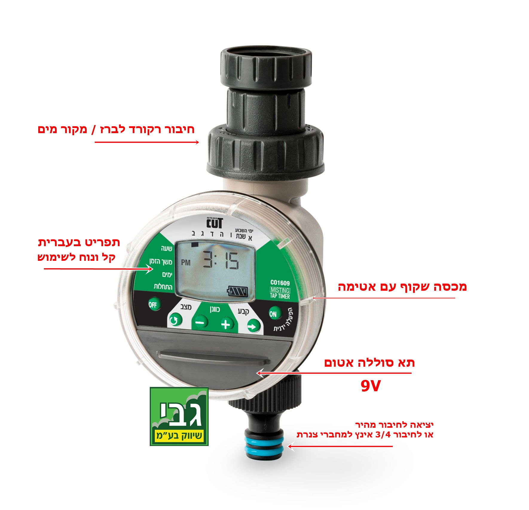 מחשב השקיה לחיבור לברז גינה או ברז כדורי 3/4 צול,