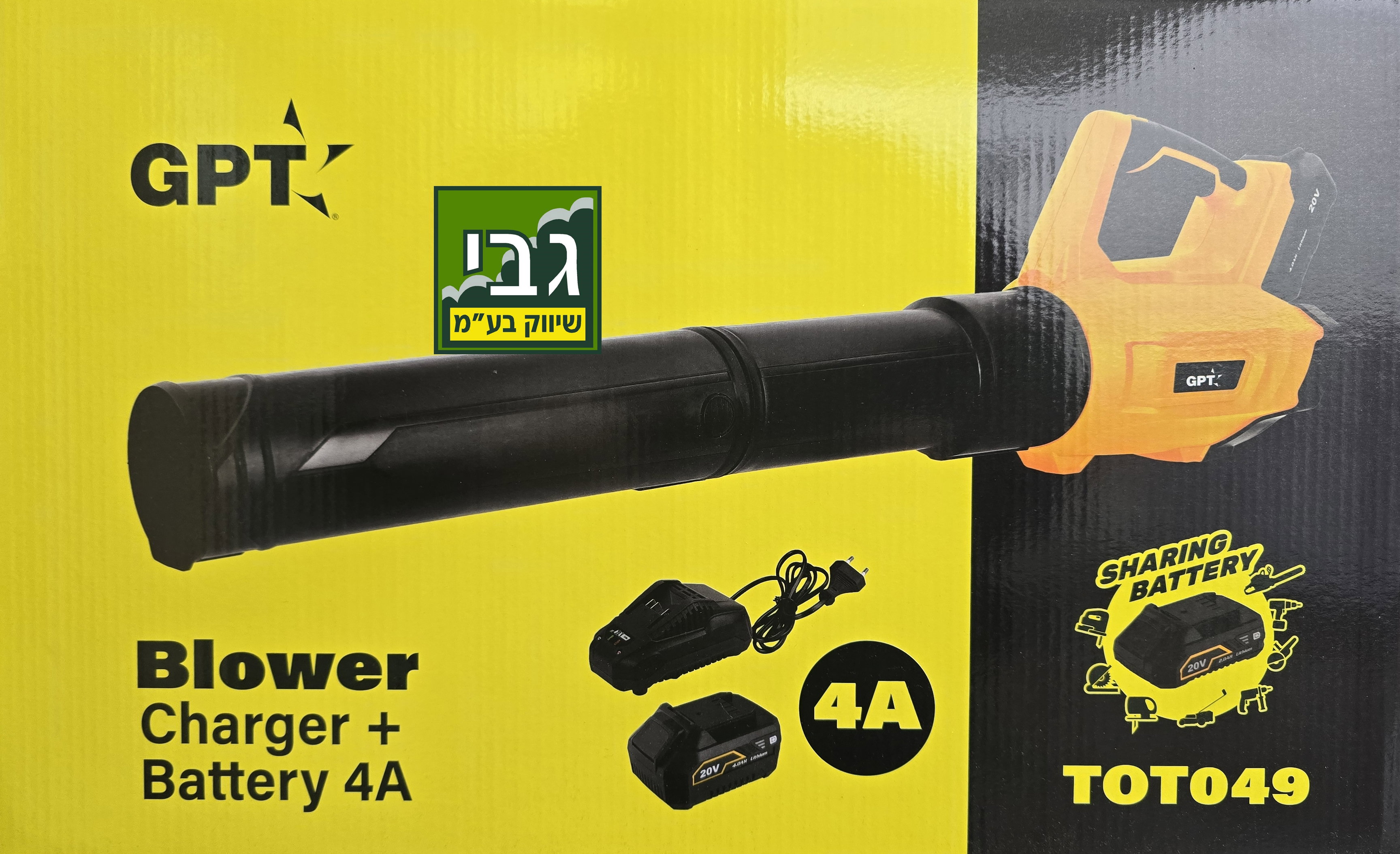 סט מפוח נטען GPT עם מטען וסוללה 20V 4A דגם TOT049