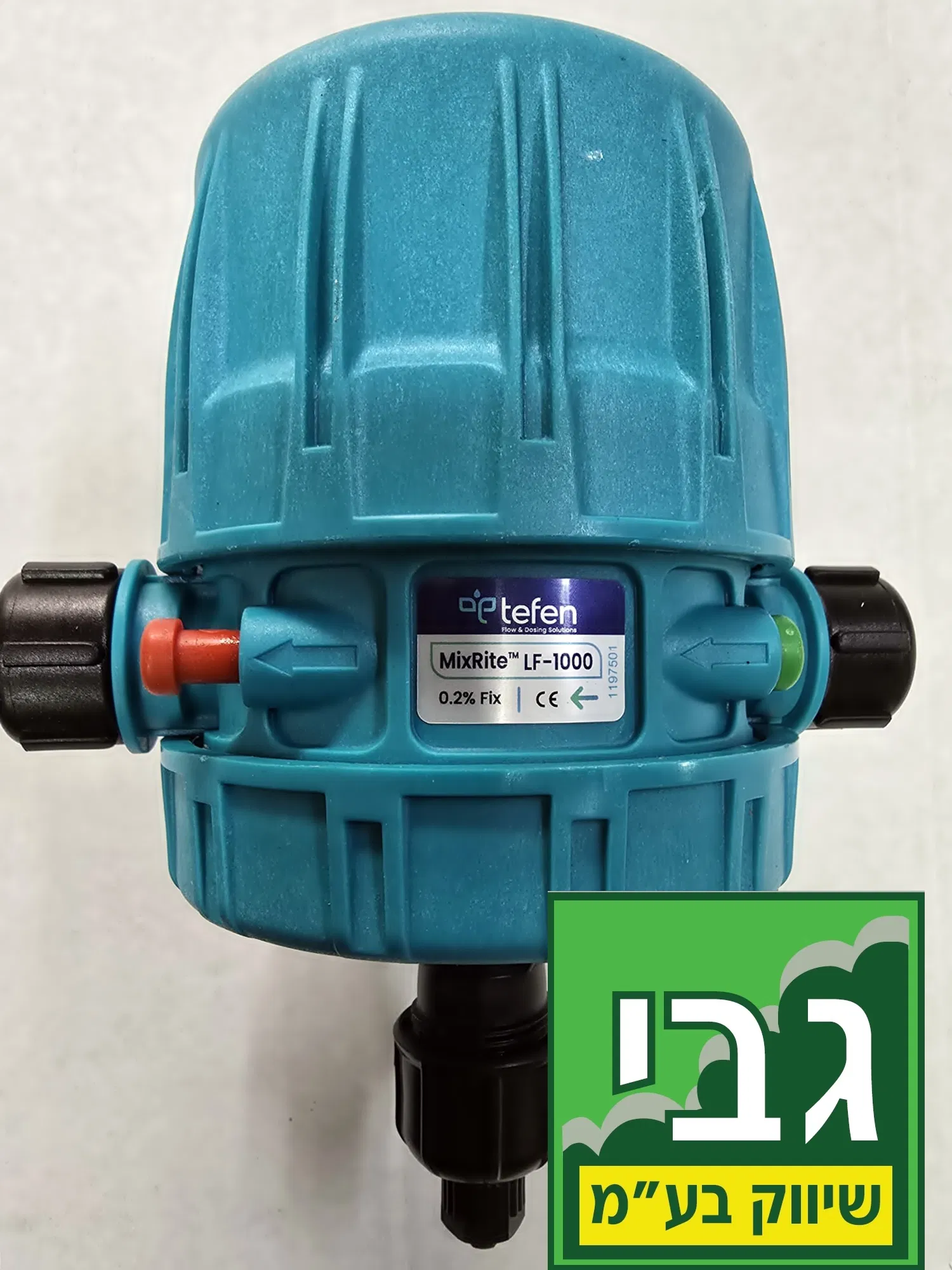 משאבת דישון תפן קומפקטית מהדור החדש של תפן 1000-MixRite TM LF משאבת דישון תפן - תוצרת ישראל מדגם 1000-MixRite LF. משאבת מינון שקטה ומדויקת לגינה פורחת וחסכונית כל השנה. משאבה שקטה ואמינה לאורך זמן אידיאלית לשימוש בגינות פרטיות – עבודה גם בספיקה נמוכה 10-1000 l/h. טווח לחץ מים 0.2-8 bar טמפרטורת עבודה: 4-40º C