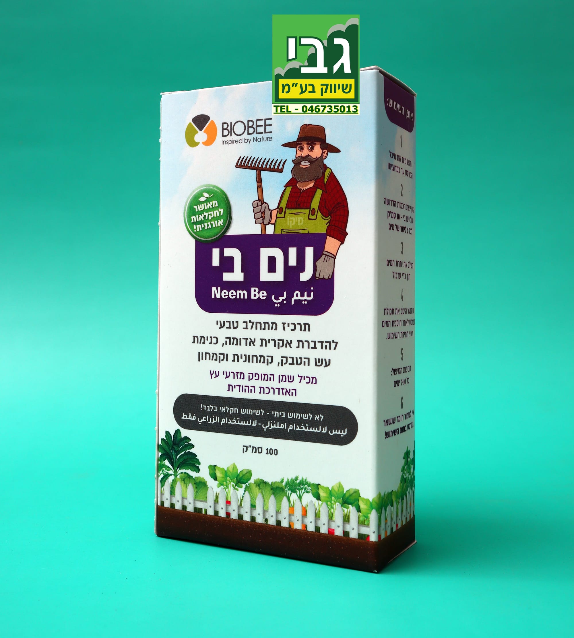 נים בי להדברת מחלות ואקריות 100 סמ"ק נים-בי הוא תכשיר טבעי, המופק מזרעי עץ האזדרכת ההודית ומשמש להדברת המחלות קימחון וקימחונית בגידולי ירקות ופרחים. נים-בי פועל הן כמונע הדבקות (פרופילקטי) והן כמדביר ומרפא נגיעות קיימות (קוראטיבי). בנוסף, ריסוס סדיר בנים-בי משיג מניעה והדברה של אקריות וכנימות עלה שונות. נים בי לא משאיר שאריות רעלים ויעיל מאוד לטיפול עד יומיים לפני הקטיף יעילות המוצר שווה לחומרי הדברה כימיים, המינון המומלץ לריסוס נים- בי הוא 1% חומר ל 99% מים.