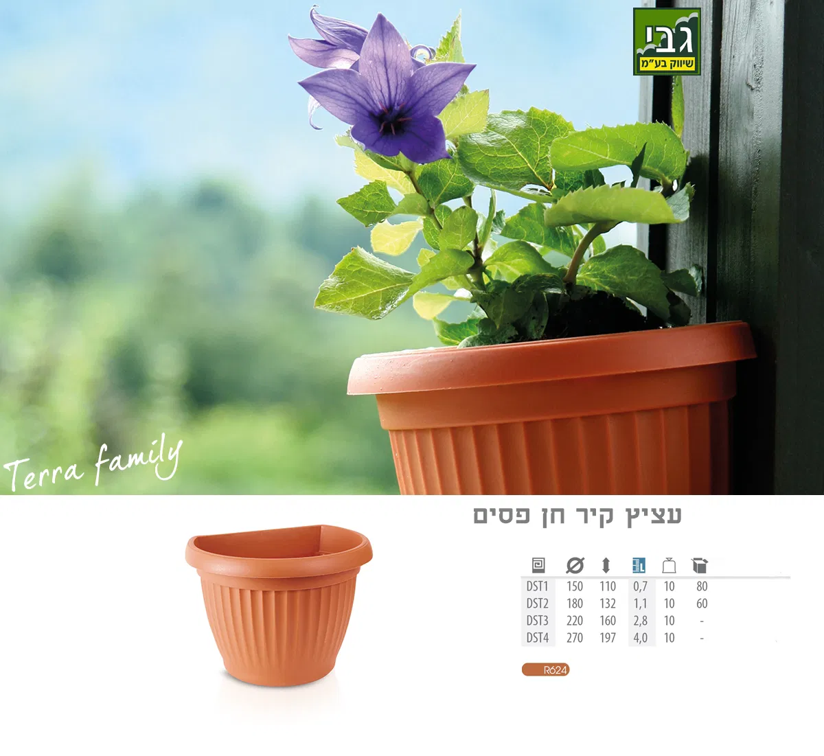 עציץ קיר פסים דגם חן 27-18 ס"מ צבע טרקוטה