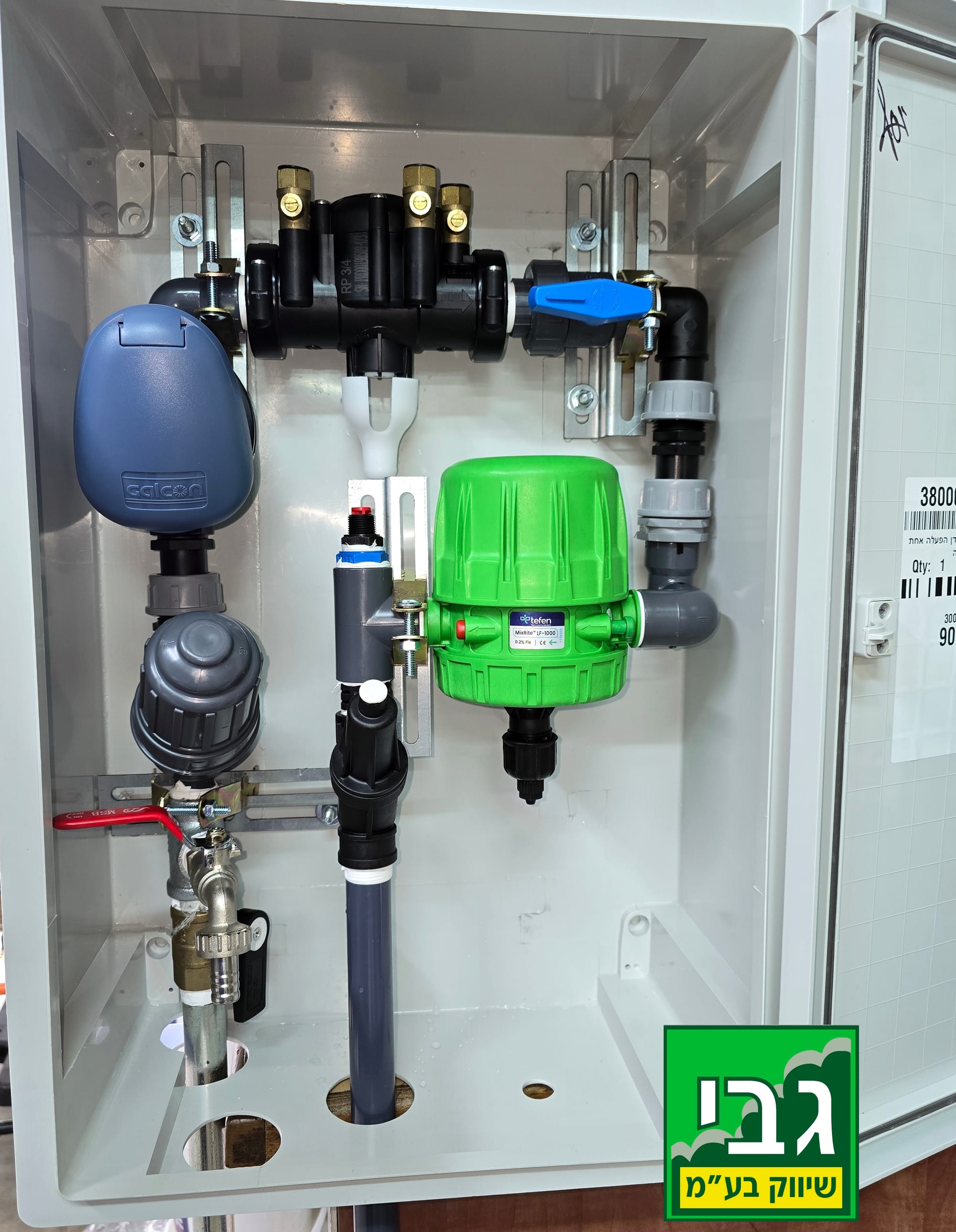 ראש מערכת השקיה חד קווי כולל משאבת דישון תפן ומז"ח ( מונע זרימה חוזרת) אר"י