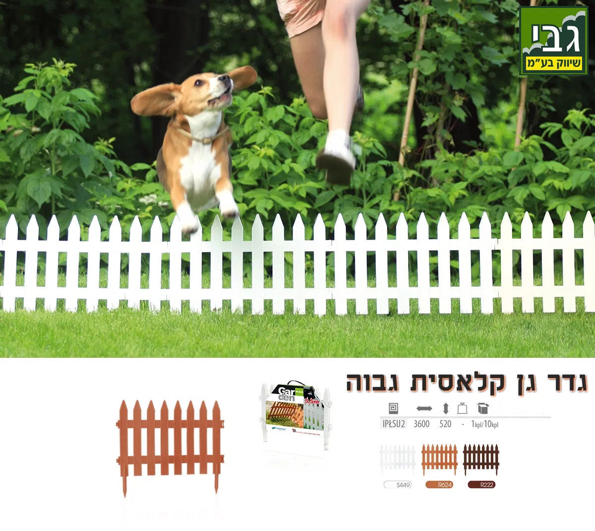 וגדר גינה באורך 3.6 מטר ובגובה 52 ס"מ. (10 ס"מ ננעץ באדמה)