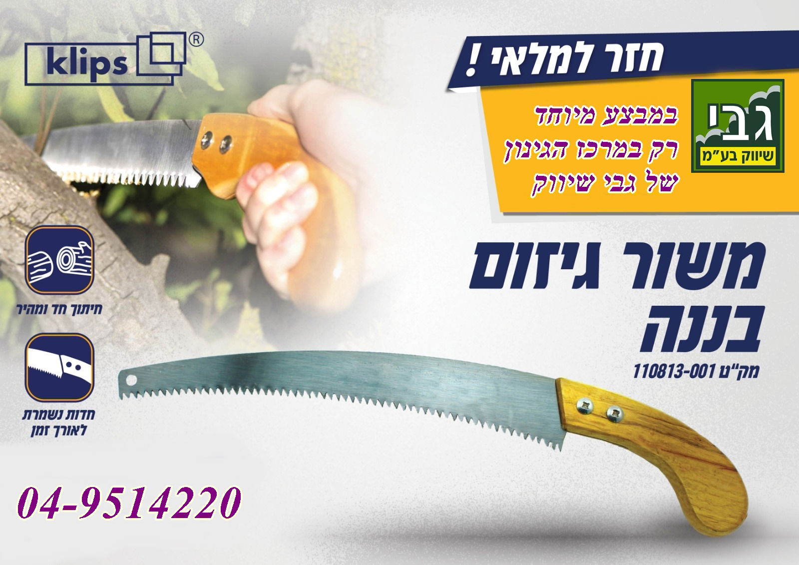 משור גיזום בננה ידית עץ במבצע משור ידני וחד מאוד, משור בננה (קשת) לגיזום עץ, ענפים גזעים וכו' בקלות ויעילות. חיתוך חד מדוייק ונקי, עמידות וחדות ארוכת טווח. אורך כולל כ 43 ס"מ, אורך להב 30 ס"מ.